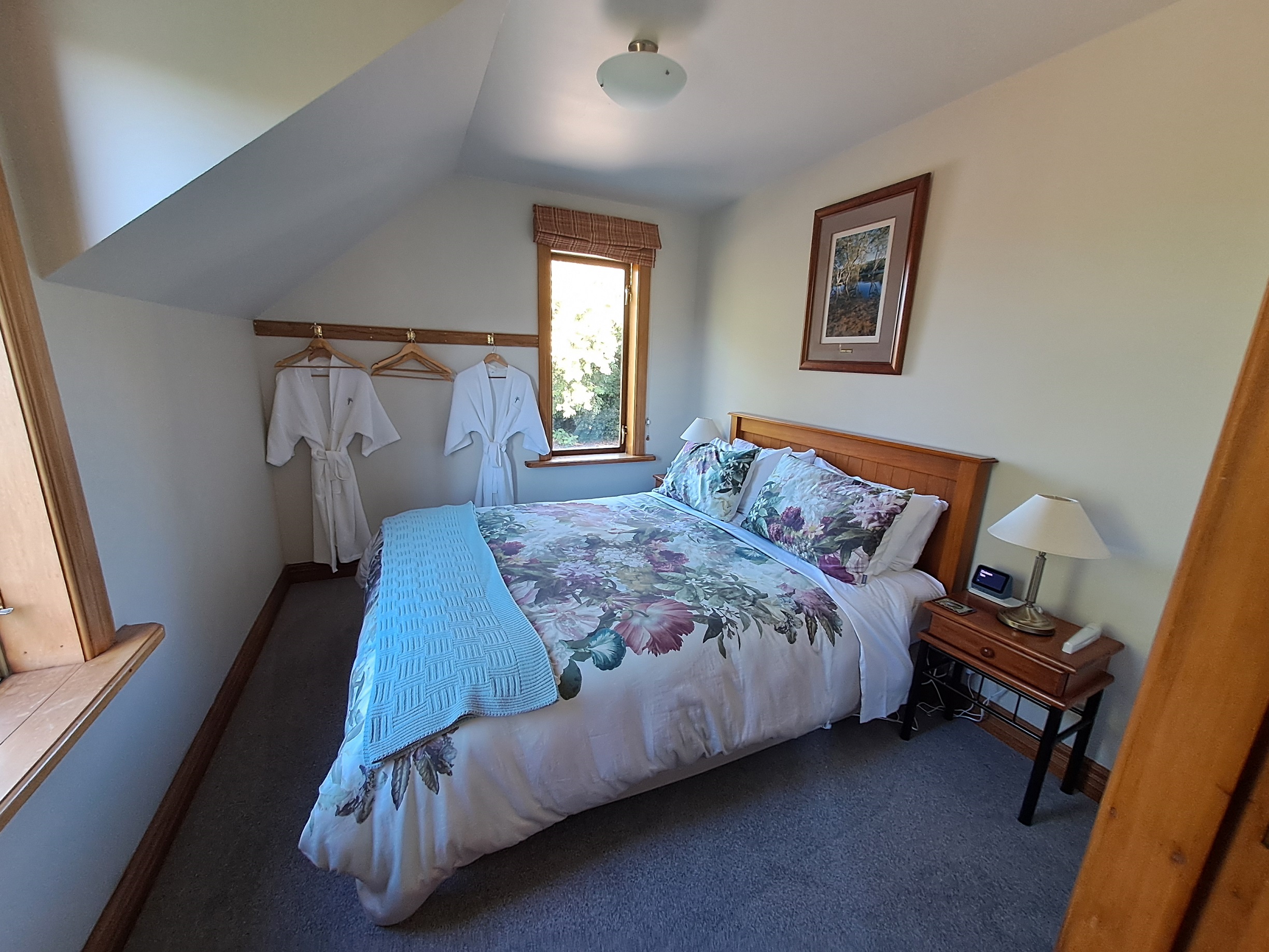 Enjoy lovely elevated mountain views from each of the bedrooms – one Queen bedroom and one bedroom two single beds.